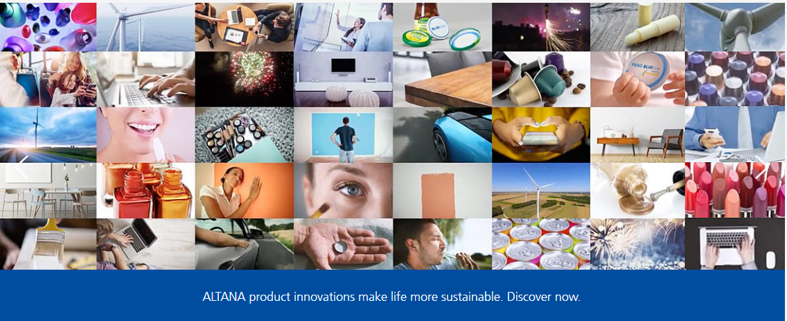 Die ALTANA Gruppe bietet innovative, umweltverträgliche Speziallösungen für Lackhersteller, Lack- und Kunststoffverarbeiter, Druck- und Verpackungsindustrie, die Kosmetikbranche sowie die Elektroindustrie an. Das Produktprogramm umfasst Additive, Speziallacke und -klebstoffe, Effektpigmente, Dichtungs- und Vergussmassen, Imprägniermittel sowie Prüf- und Messinstrumente. Die vier Geschäftsbereiche von ALTANA nehmen in ihren Zielmärkten jeweils führende Positionen hinsichtlich Qualität, Produktlösungskompetenz, Innovation und Service ein.